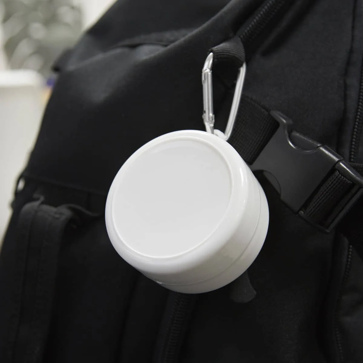 Vaso plegable anti-bacterias con tapa y mosquetón plateado de transporte. 220 ml. de capacidad.
